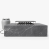 A square patio fire pit designed for outdoor seating areas.
